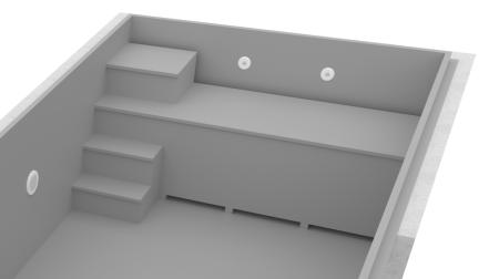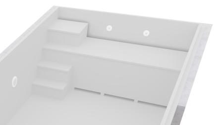 Indoor steps are a comfortable and safe solution. They make it easier to enter the pool and, combined with a side shelf, allow you to sit pleasantly in the water. Depending on the size of the pool, we also offer additional stairs to increase the comfort of the pool.