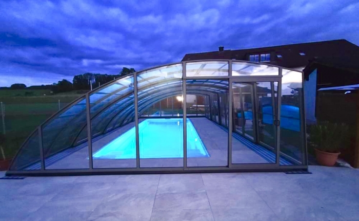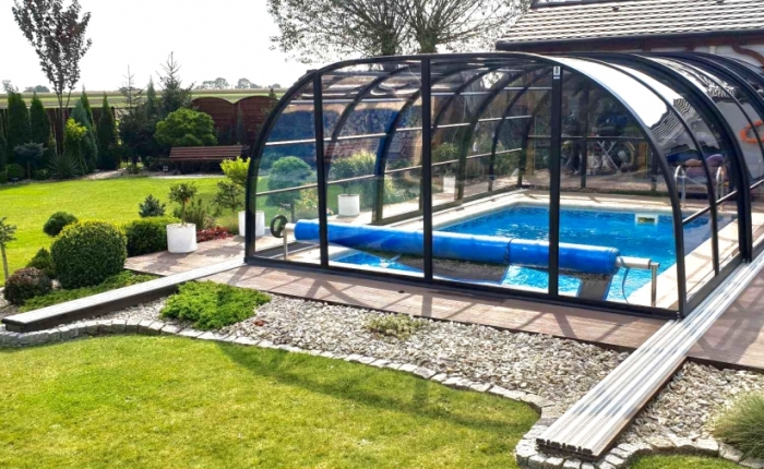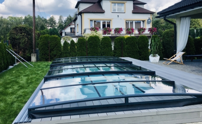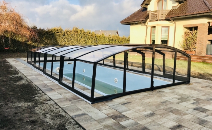 Zadaszenia niskie są eleganckie i minimalistycznie, dzięki czemu wpisują się w nowoczesne trendy aranżacyjne. Pomimo niskiej wysokości wciąż umożliwiają pływanie w basenie przez cały rok. To połączenie idealnej formy, jakościowego materiału z funkcjonalnością i elegancją.